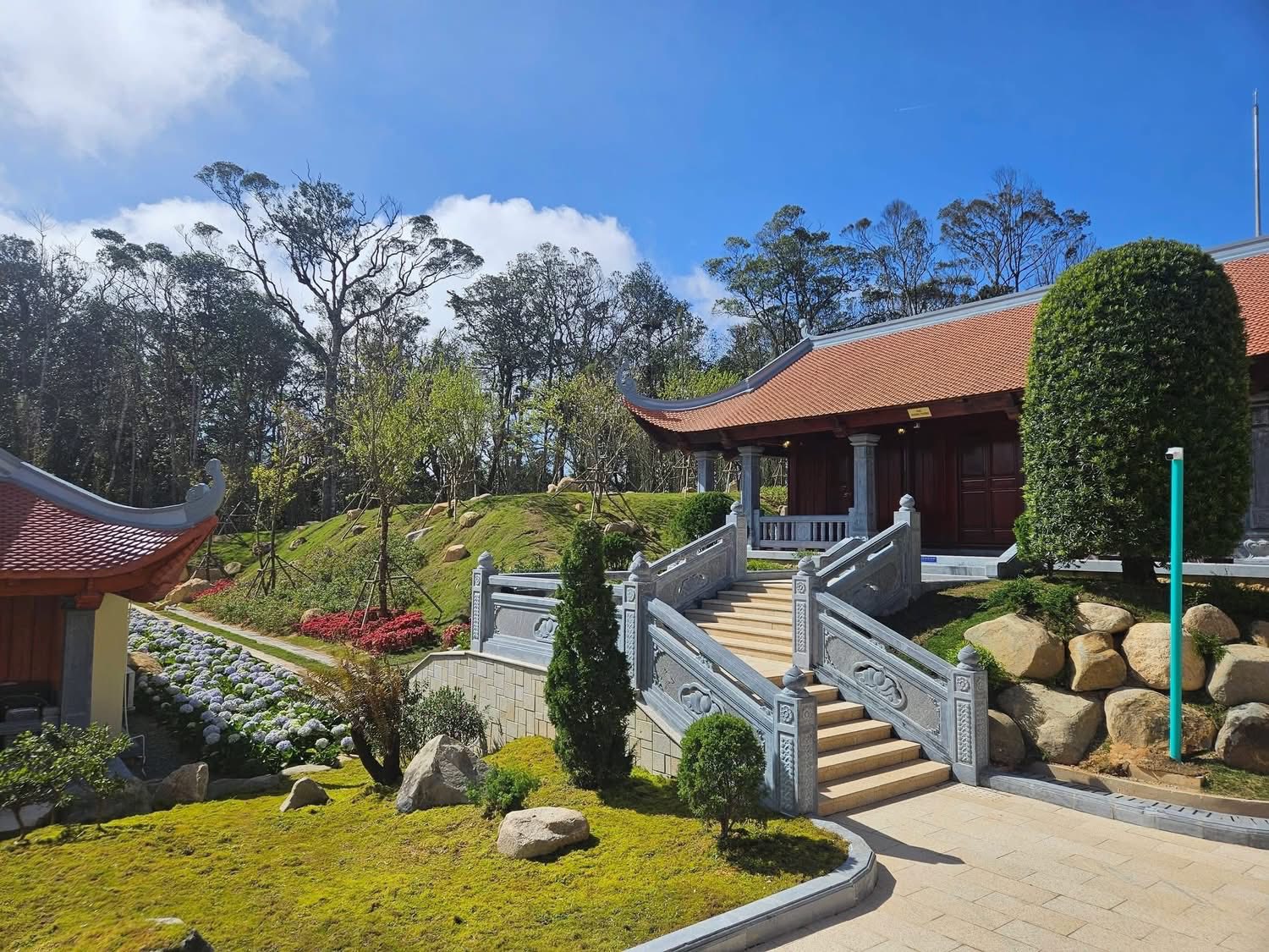 Trong khuôn viên chùa, tiếng gió hòa cùng tiếng chuông ngân vang giữa đại ngàn tạo nên cảm giác an yên, tĩnh tại, khiến mỗi bước chân đến đây như chậm lại để cảm nhận trọn vẹn sự giao hòa giữa tâm linh và thiên nhiên. Nguồn: Facebook Cam Lâm hôm nay