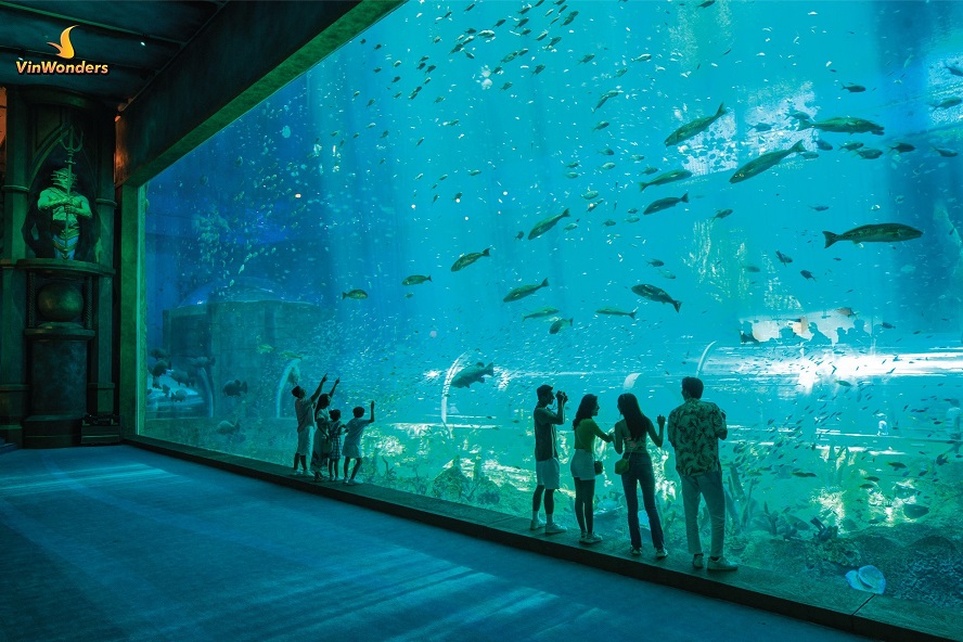 Diện tích rất lớn (khoảng 15.000 m², 3 tầng), tấm kính acrylic khổng lồ cho tầm nhìn cực “mãn nhãn” để ngắm sinh vật biển.