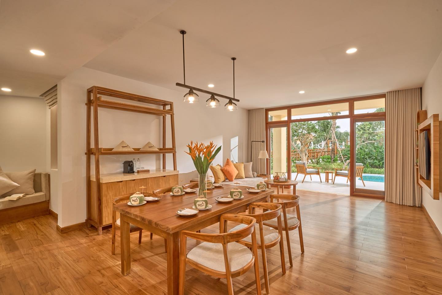 Ẩn mình bên mặt hồ yên ả, Lagoon Villa gợi lên hình ảnh một làng nghỉ dưỡng thuần Việt, được chắt lọc tinh tế qua lăng kính thiết kế hiện đại. Từ mái ngói đỏ trầm ấm, những vật liệu mộc mạc đến không gian mở đón trọn ánh sáng và gió trời, tất cả tạo nên một tổng thể sang trọng mà gần gũi, mang đến cảm giác thư thái ngay từ khoảnh khắc đầu tiên.