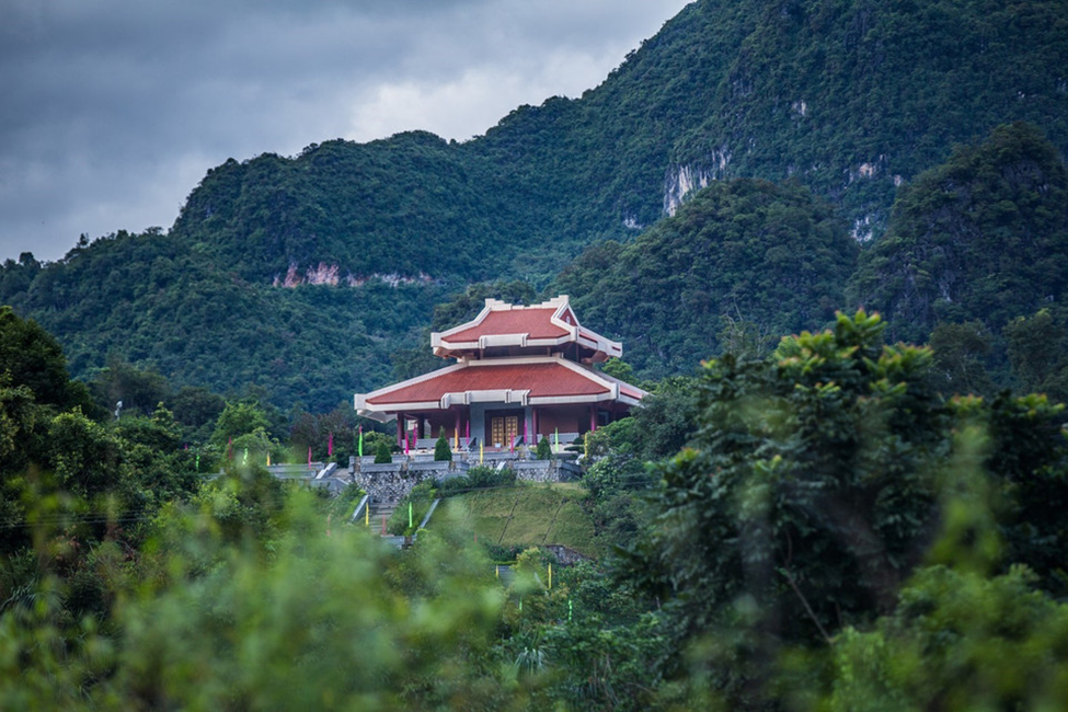 Đền thờ Chủ tích Hồ Chí Minh trang nghiêm giữa không gian linh thiêng của Khu du lịch Pác Pó. Nguồn: Trọng Đạt/TTXVN